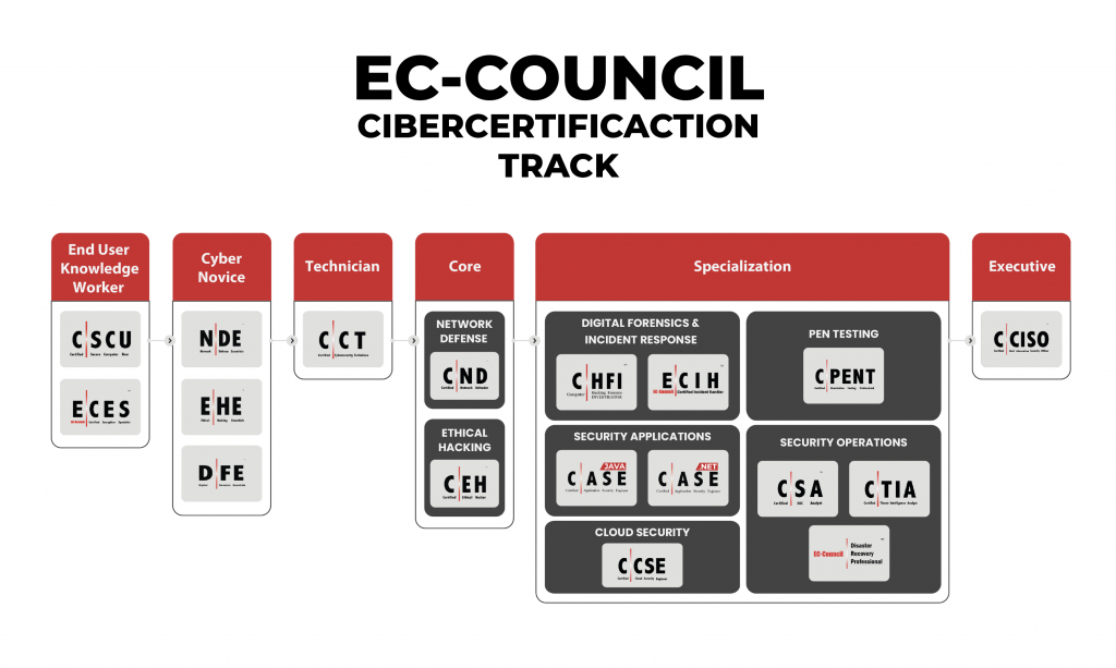 Las certificaciones incluyendo sus requisitos, modalidades de evaluación y criterios de aprobación, es definida y administrada exclusivamente por EC-Council, conforme a los estándares internacionales de certificación acreditada (ISO/IEC 17024).